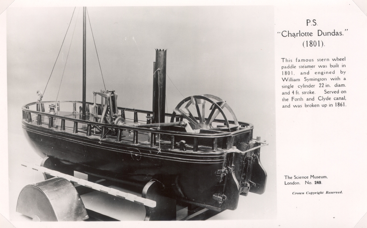 Titel: Hjulångaren R S Charlotte Dundas byggdes 1801. Hoon tjänstgjorde på Forth och Clyde kanalen tills hon plockades isär 1861.
