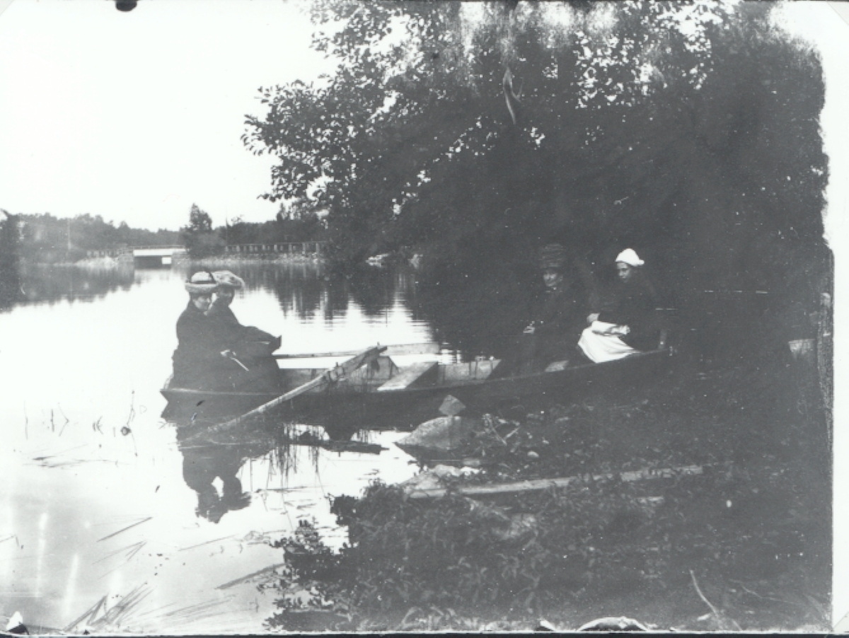 Lydia och Karin Berner och Nina Rosander i båt utanför Hvilan.