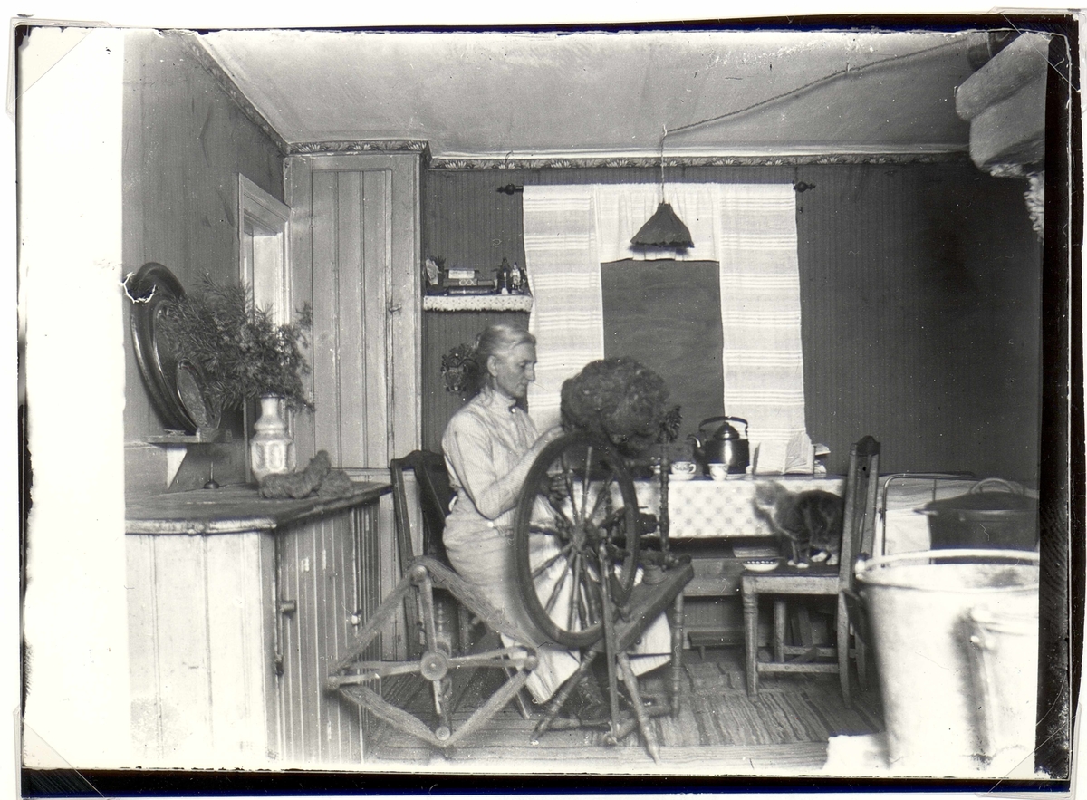 Lydia vid Spinnrocken i köket, Hvilan 1920.