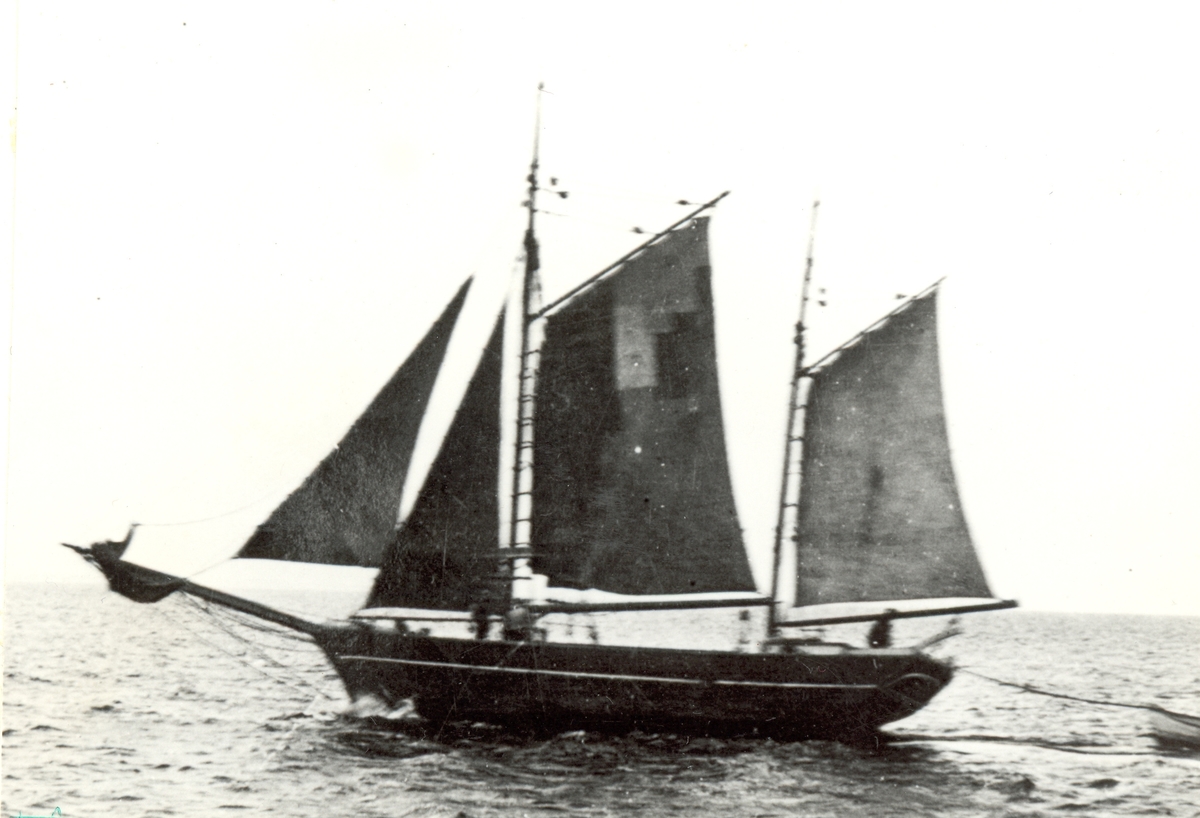 Fotot är taget av stinsen i Färjestaden i början av 1920-talet, från södra hamnarmen då Edla seglade ut. Edla ägdes då av sjökapten J, Hilmer Götherström.