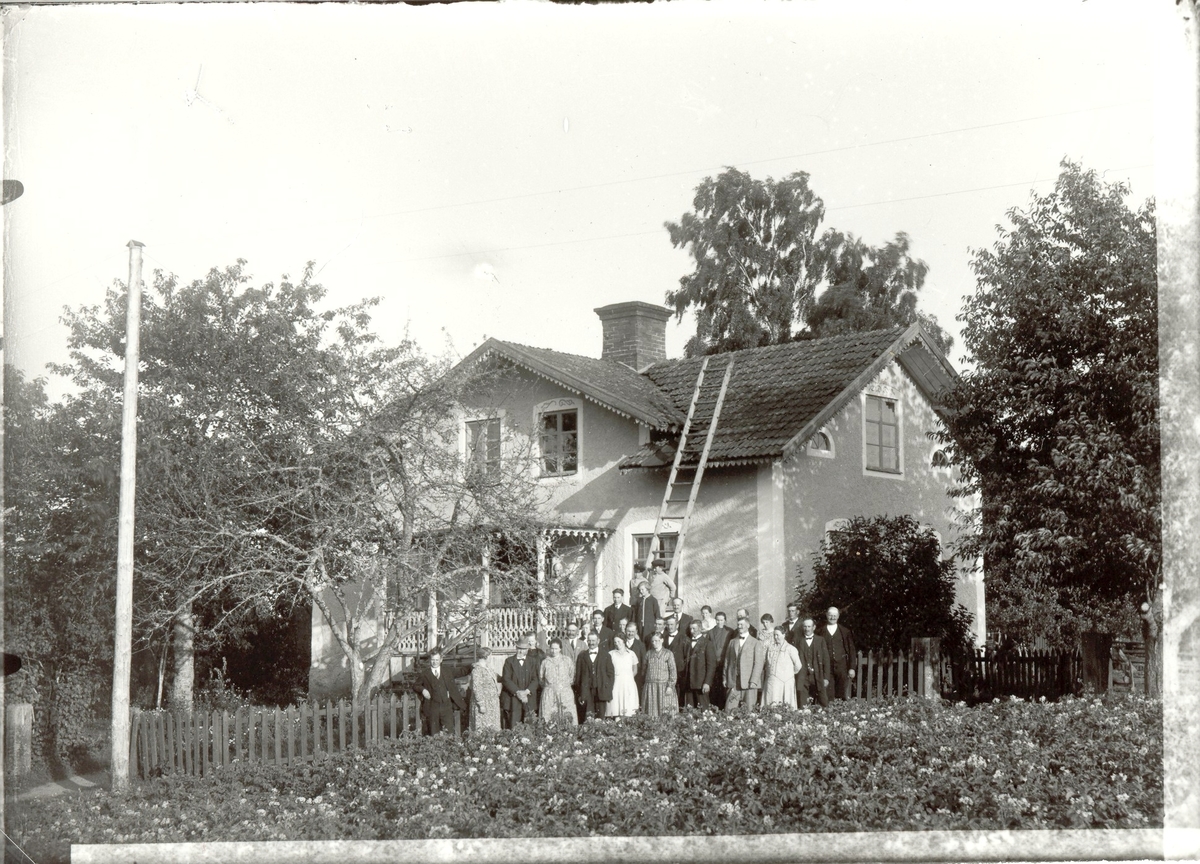Gustaf Pettersson med släkt samlade utanför sitt hem i Norrhult.