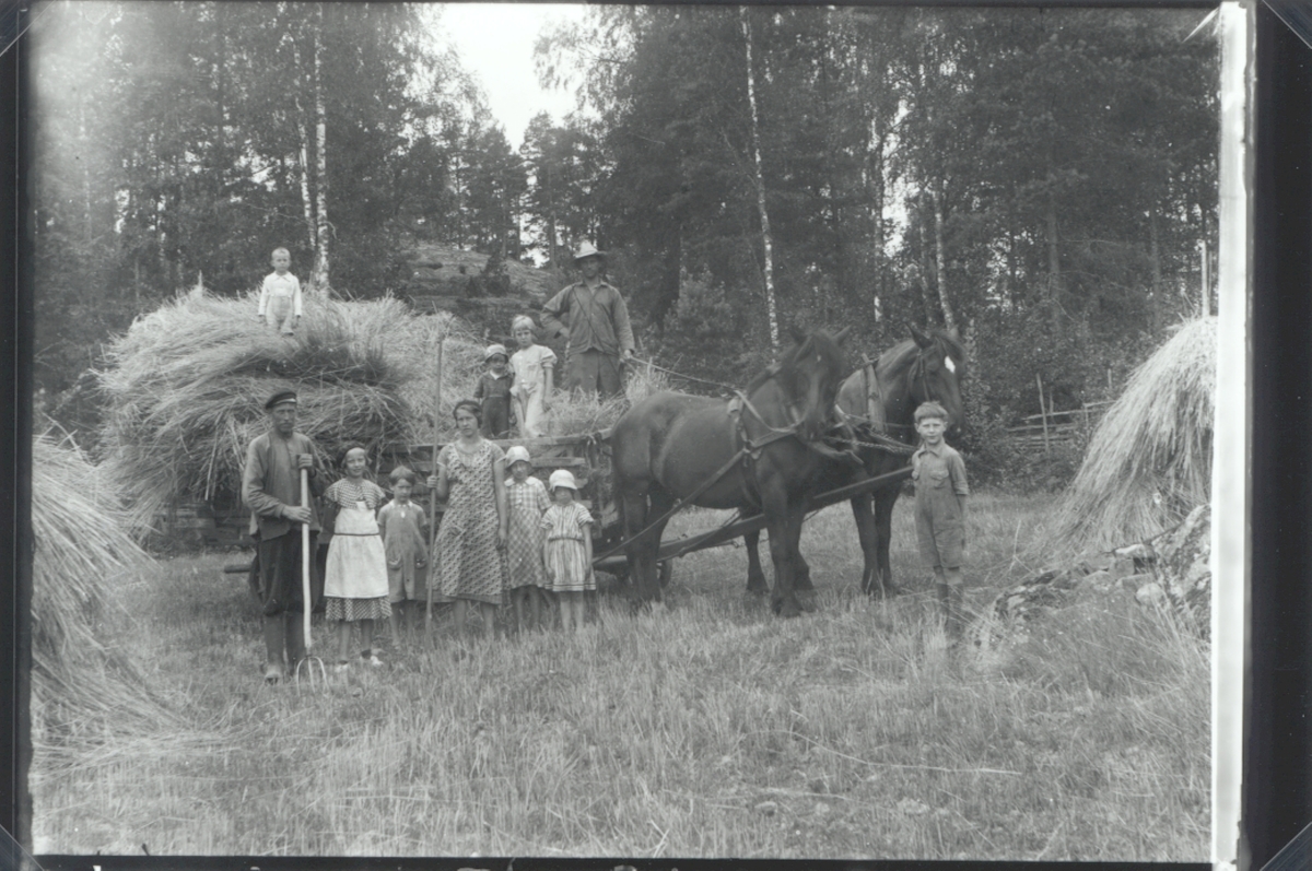 Algot med familj kör in råg 1935.