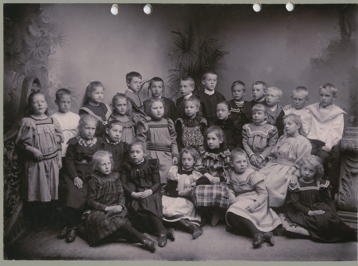 Grupporträtt med okända barn. Möjligen ett klassfoto.