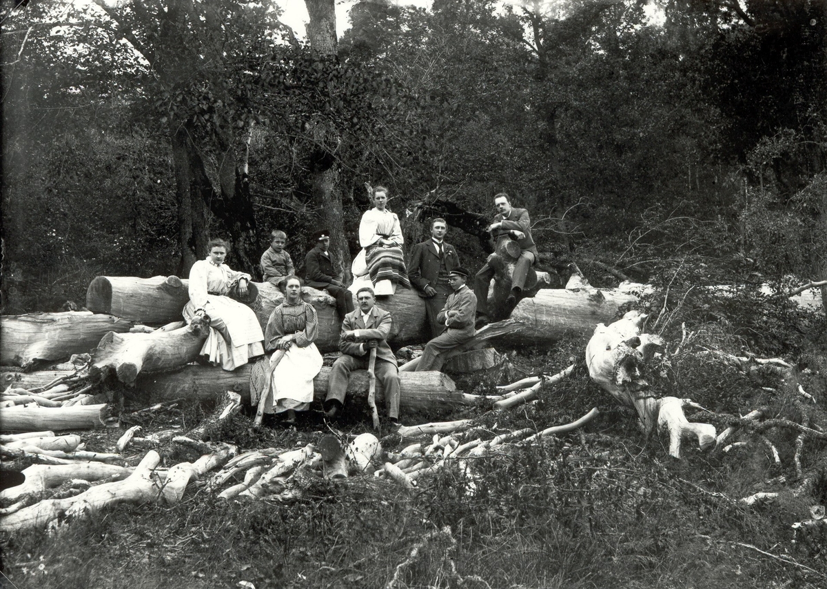 Hildur Johansson med flera på utflykt i skogen i Hällerum.