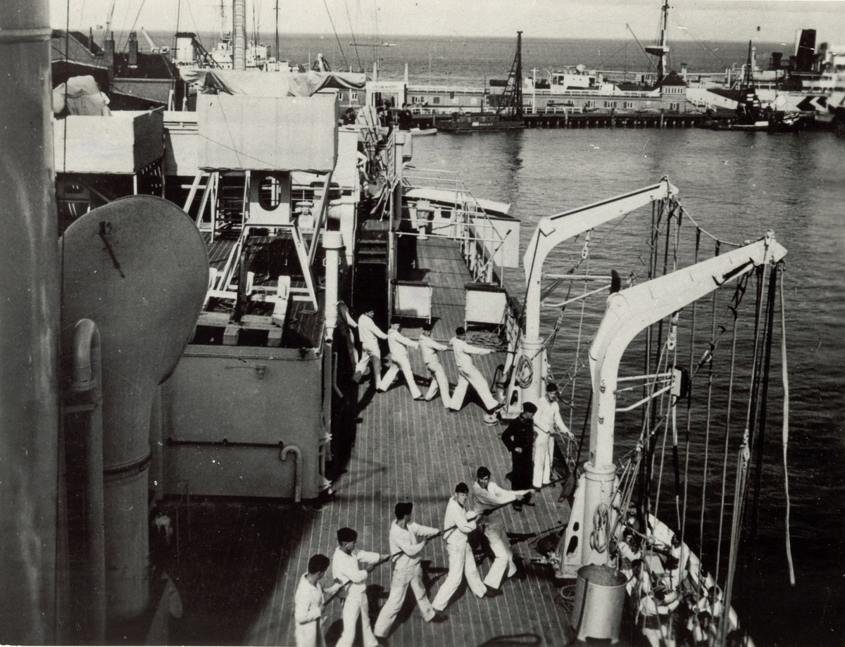 Livbåtsövning ombord i en tysk hjälpkryssare under kriget 1939-45