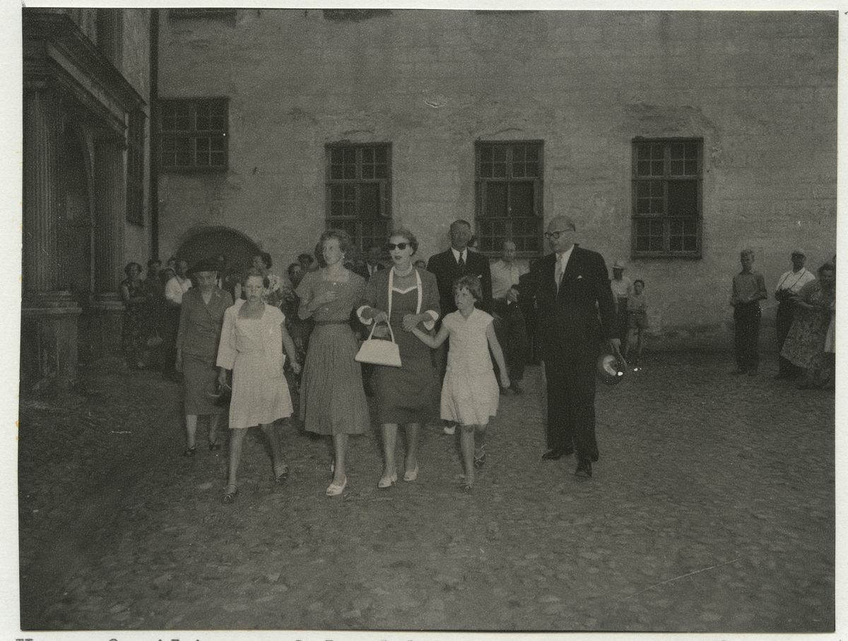 Kungafamiljen med landshövding Wagnsson på inre borggården på Kalmar Slott.
