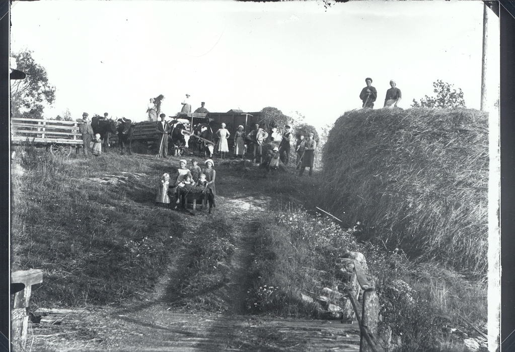 Tröskningsarbete i Rumhult under krigsåret 1916.