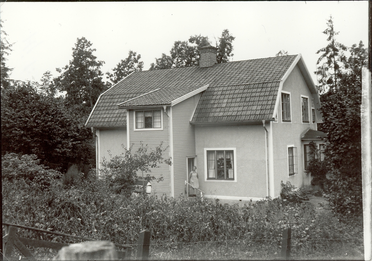 Cecilia poserar utanför sitt hus i Mörtfors.