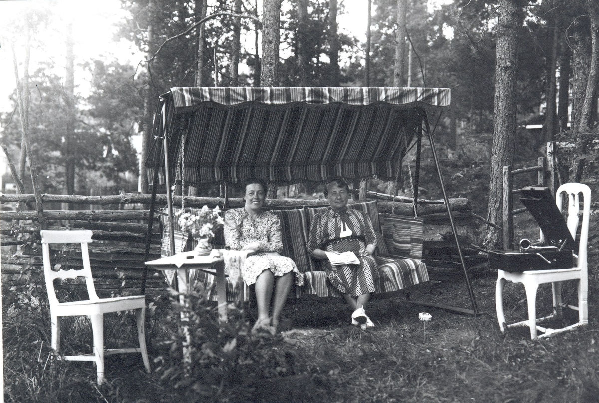 Semestrande stockholmsdamer på Mörtfors Badanstalt. Deras namn är okända. Kvar som minne är att de spelade grammofon från morgon till kväll.
