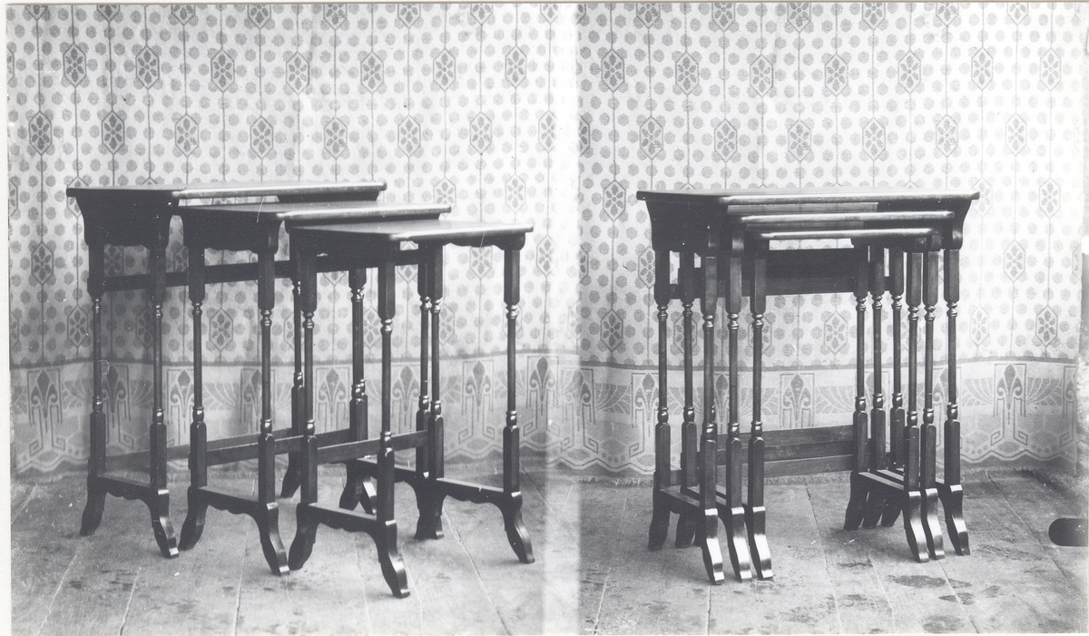 Satsbord tillverkat av Mörtfors Stol- och Möbelfabrik. Levererades till olika möbelfirmor i bl a Stockholm.