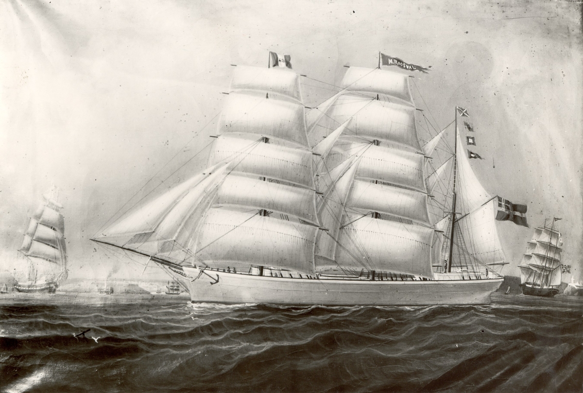 Byggd i Oskarshamn 1874 för f:a Wijkström. Målning tillhörande konsul Gustaf Wijkström, Oskarshamn. Enligt text målad i Queenstown 1875. På förtoppen flagga för assuransbolaget Kalmar län och Blekingebolaget med färgerna blått, vitt, blått. Neg hos fotograf Lindblad, Oskarshamn.