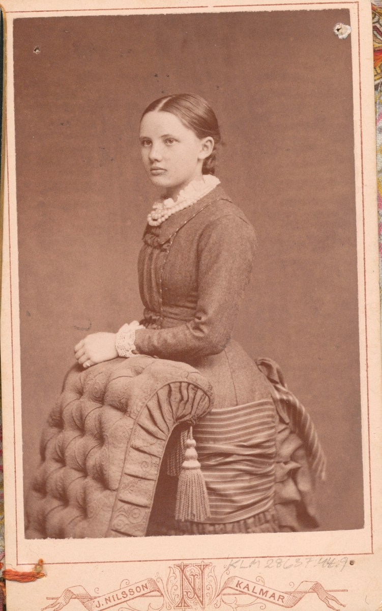 Porträtt på en flicka. Bilden är monterad i ett sytt album och svår att skanna.