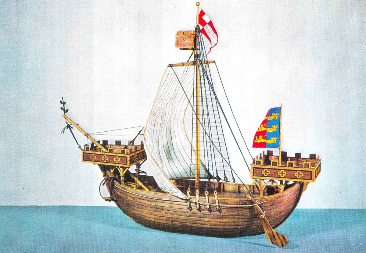 Skepp från Cinque Ports (fem hamnarna) 1200-talet. Modell baserat på skeppet visat på Dovers sigill, vilket användes till och med 1284.