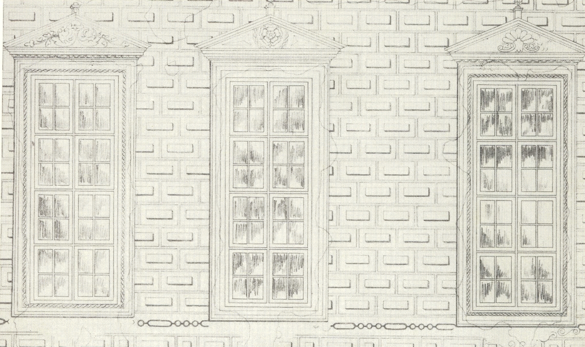 Kalmar Slott. Detalj av den ristade och målade putsdekorationen 1580-talet. På södra borggårdsfasaden.