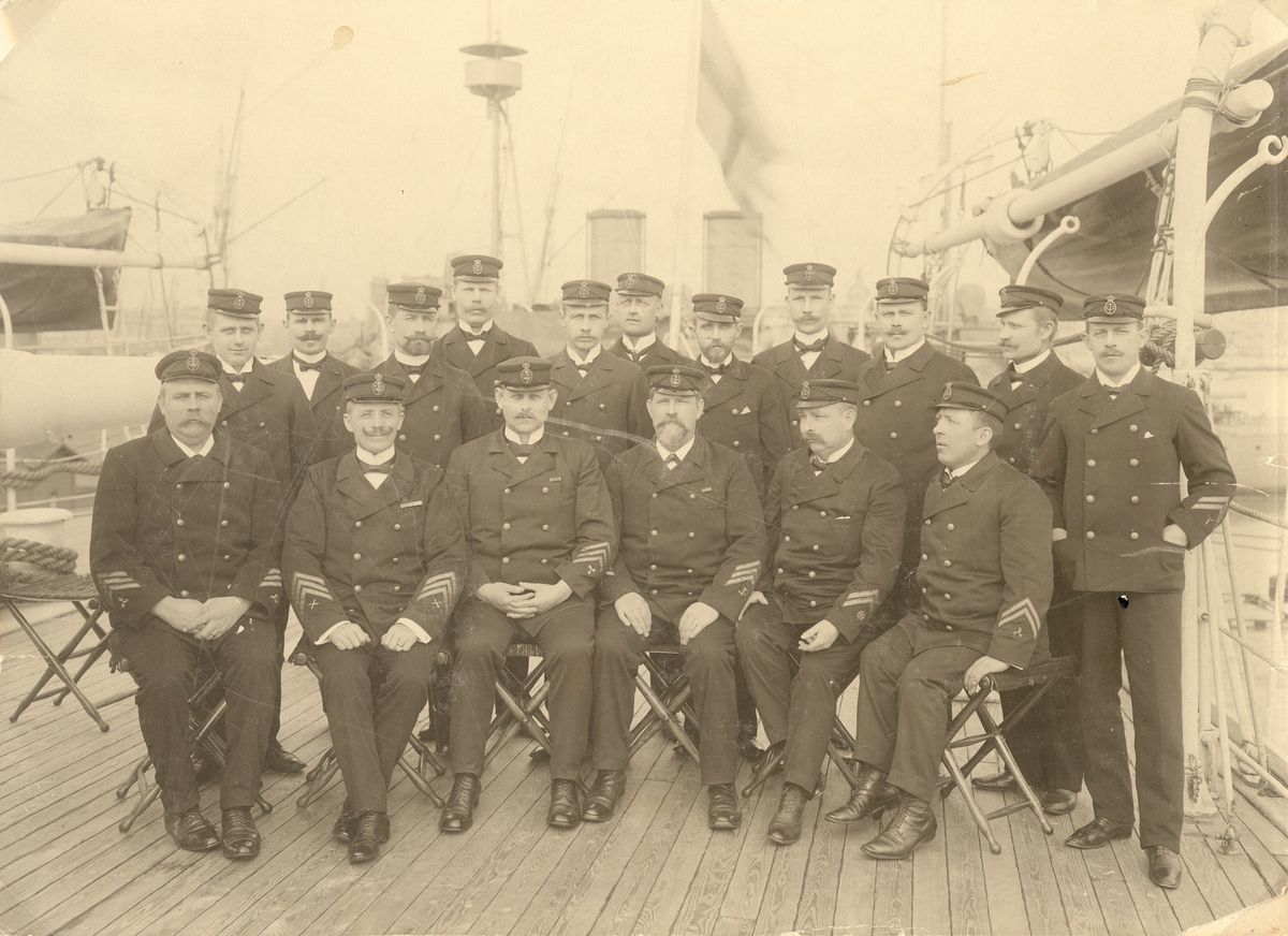 Uppgifter saknas även på Marinmuseum. Fylgia är här fortfarande vit, målades grå under WWI.