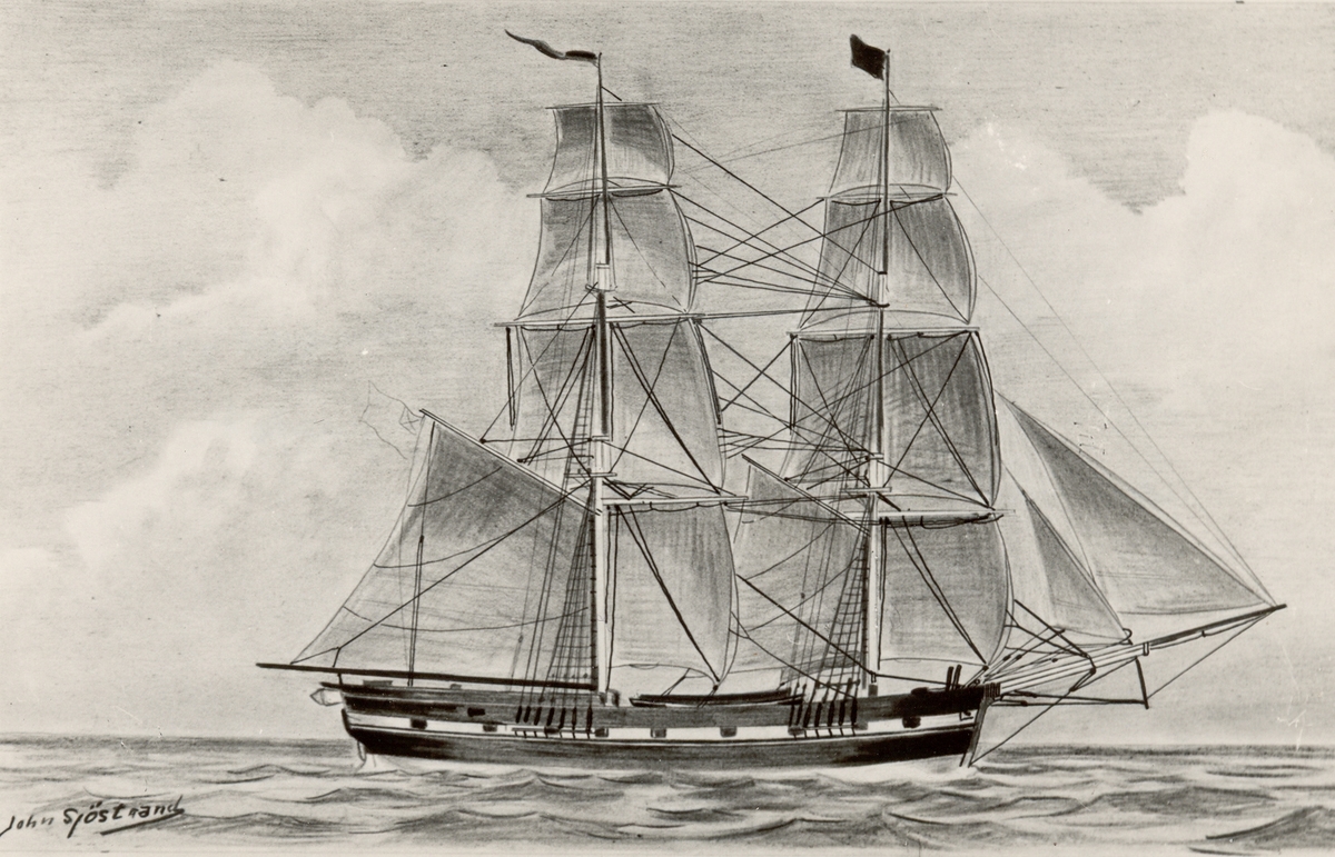 Brigg, Kalmar. Kapten J.G. Rothman. Kopia av J. Sjöstrand efter original 1827.