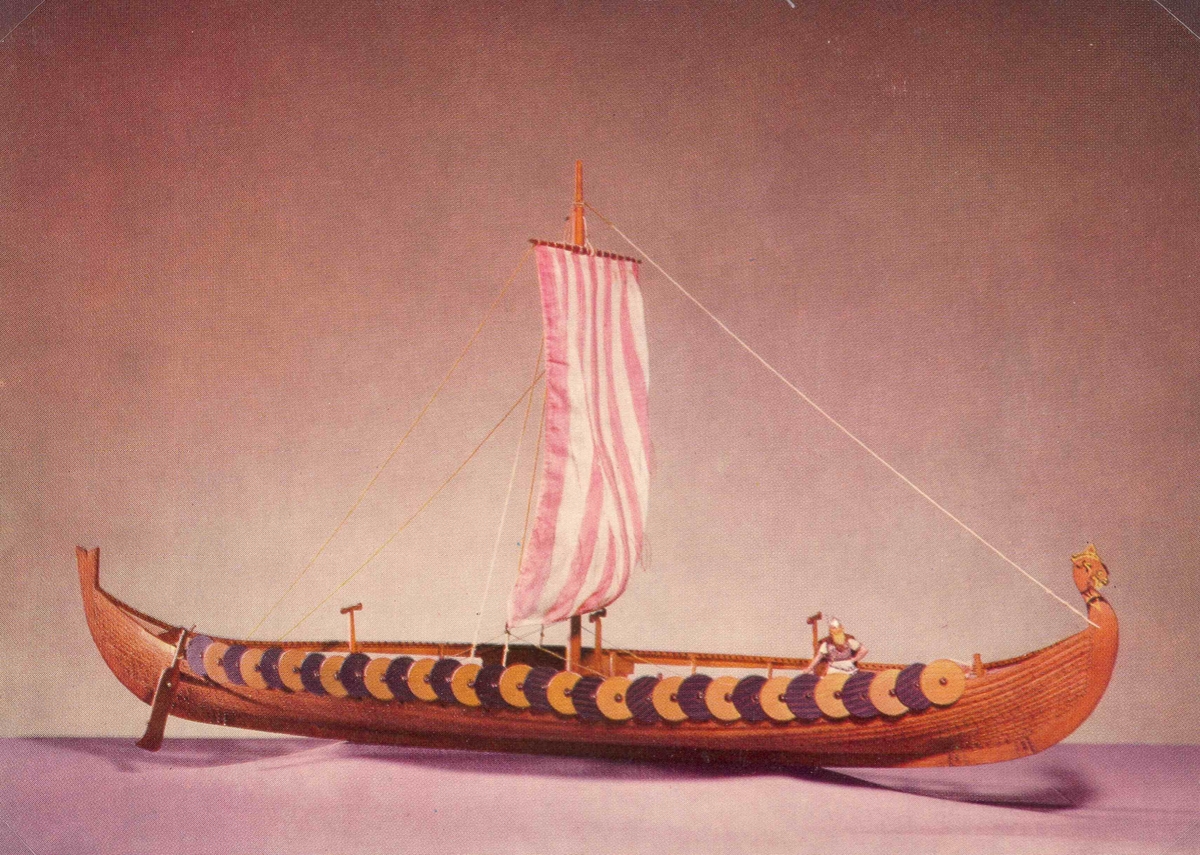 Modell av vikingaskepp funnet i Gokstad, Norge. Från ca 900 e.kr.