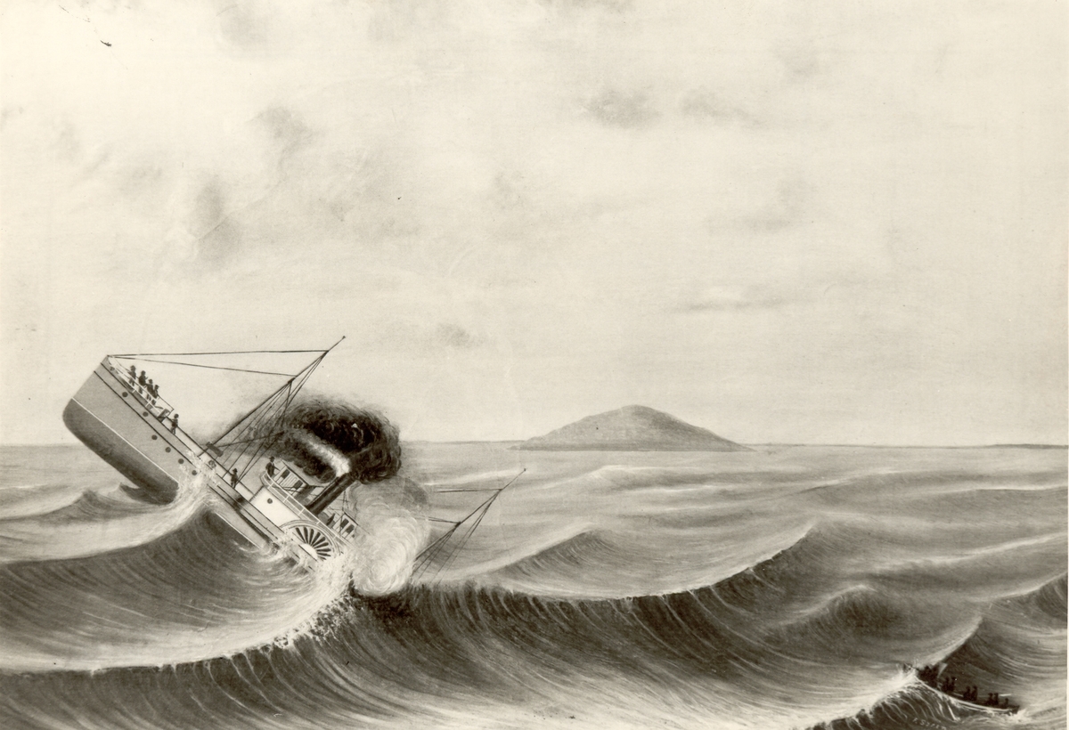 Målning av Otto Syrén, återgivande ångfartyget Malmöhus undergång 1882.