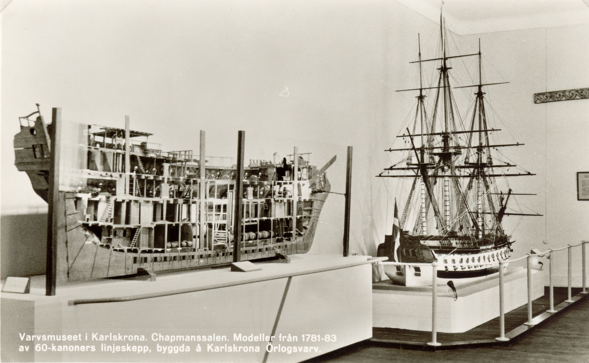 Varvsmuseet i Karlskrona. Chapmanssalen. Modeller från 1781-83 av 60-kanoners linjeskepp, byggda å Karlskrona Örlogsvarv.