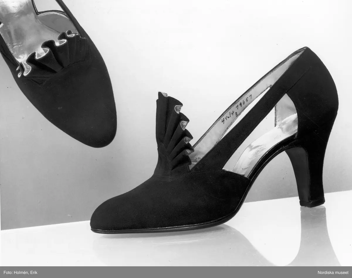 Sko av svart mocca med veckmontering infodrad med guldchevreau.
