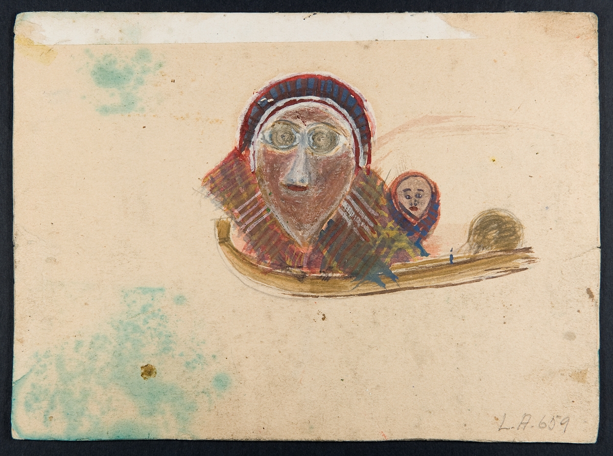 "Torne lappmark. Jukkasjärvi socken.Talma lappby. Färglagd teckning av Johan Turi. L.A. 659. nr. 5"