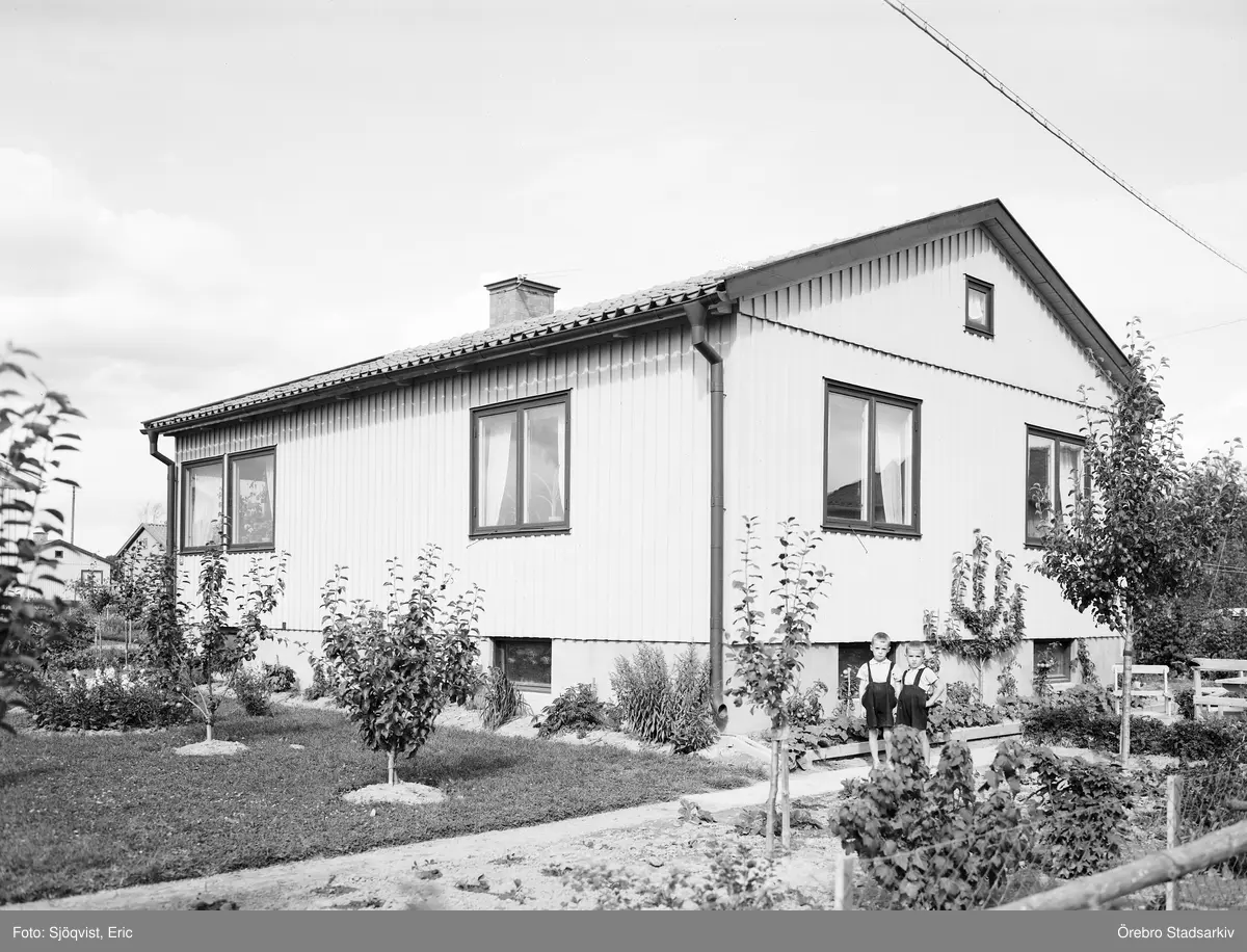 Pojkar framför hus, 1943