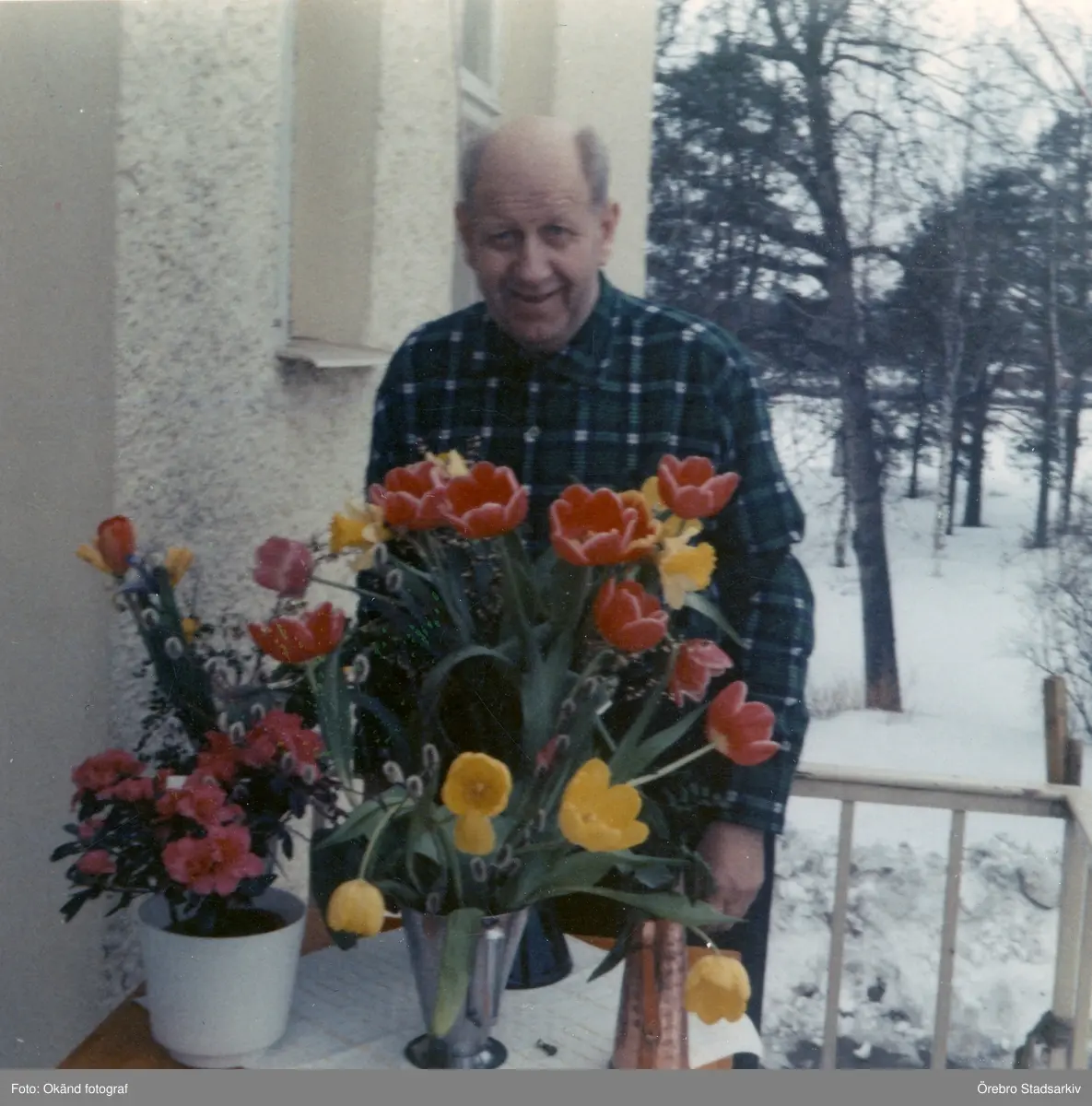 Man uppvaktad med blommor, 1970