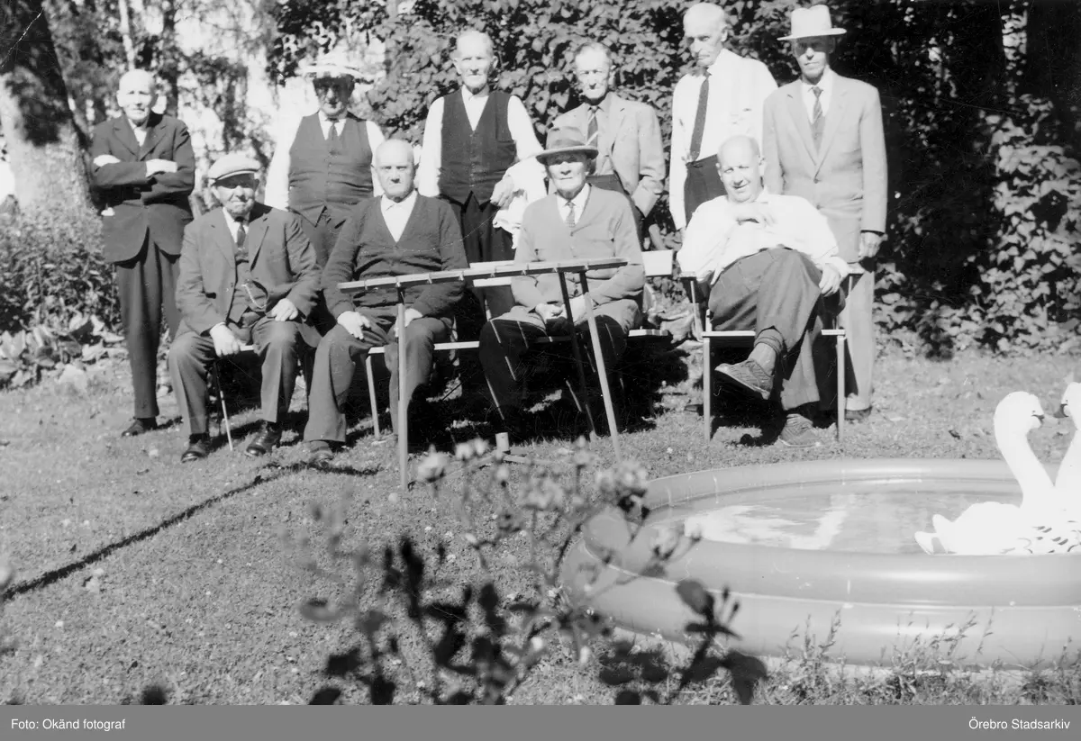 Gruppbild i trädgård, 1965-1970