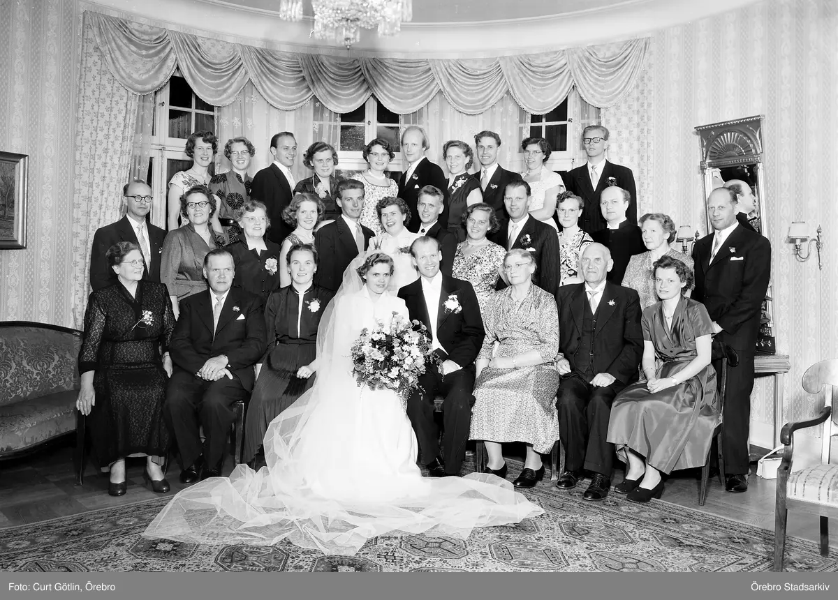 Brudpar med gäster, 1954