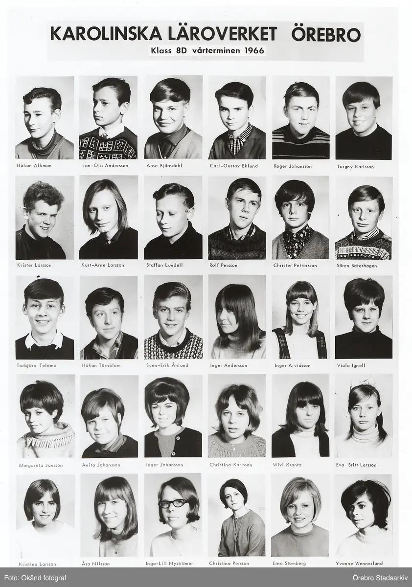 Klass 8d på Karolinska skolan, 1966