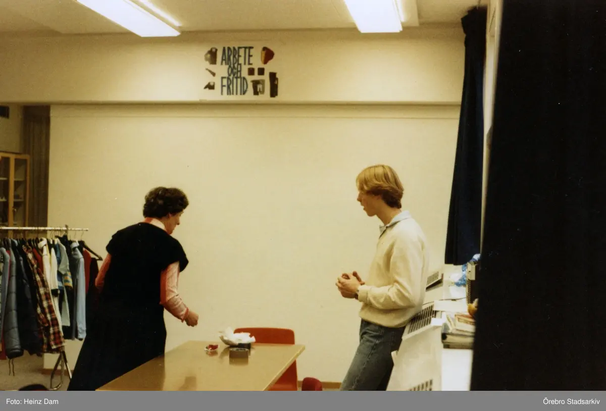 Utställning av arbets-och fritidskläder på Risbergska skolan, november 1981