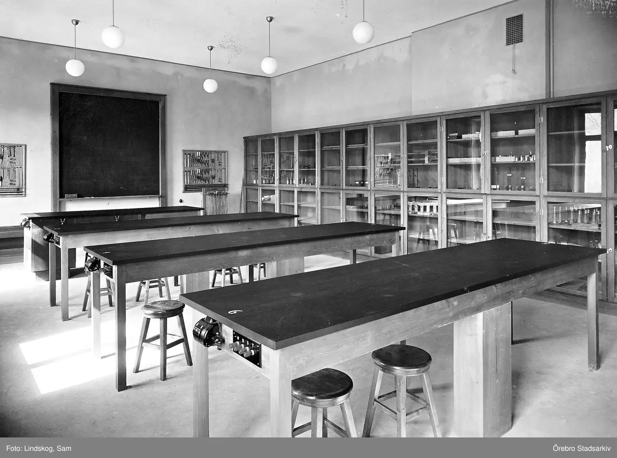 Fysiklaborationssal på Karolinska skolan, 1940-tal
