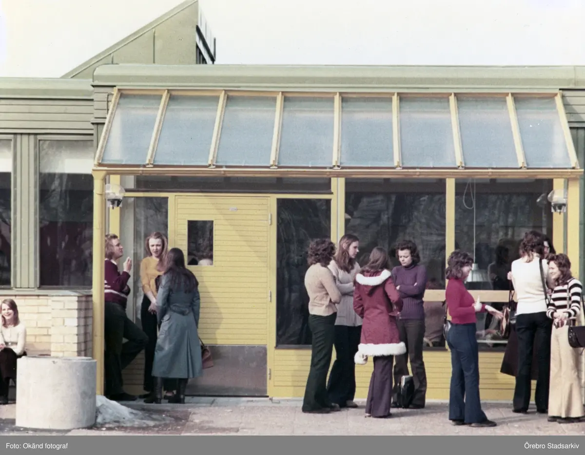 Elever vid en av Risbergska skolans entréer, 1970-tal