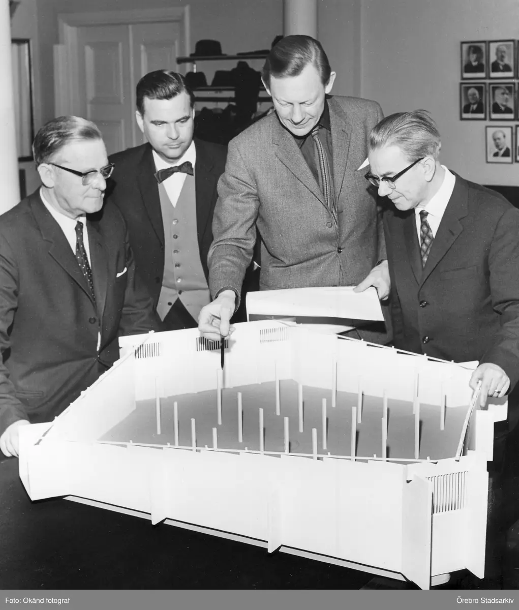 Män framför utställningsmodell, 1965