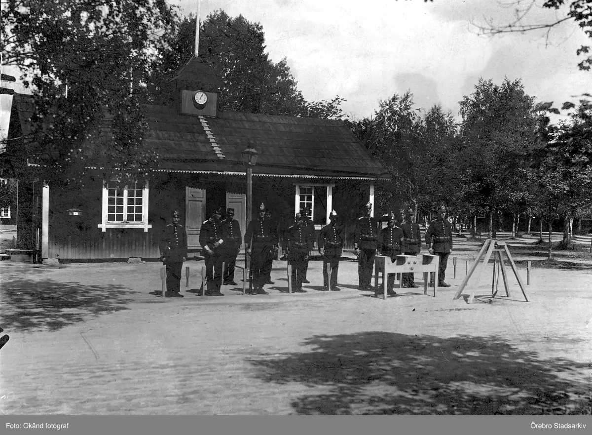 Militärer framför vaktstuga, 1860-1899