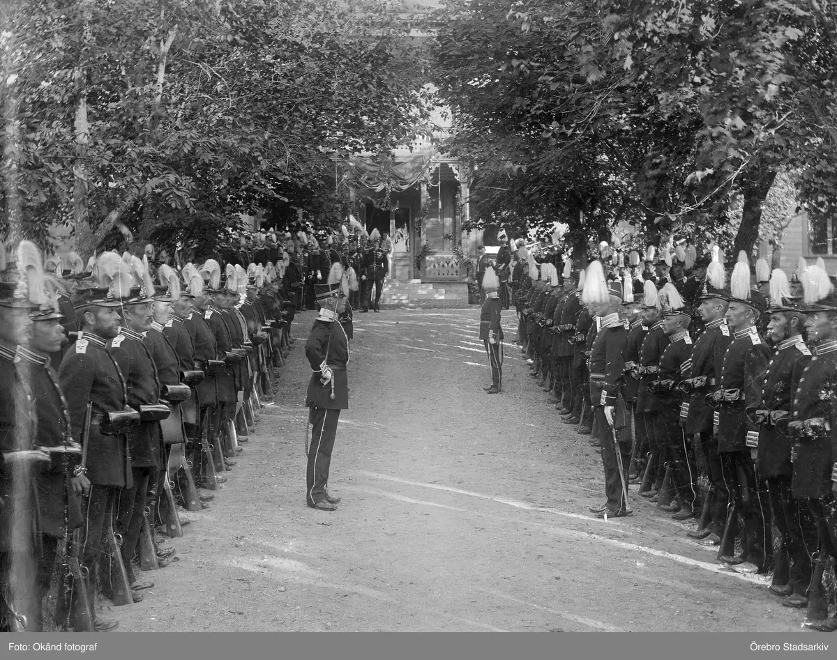 Livkompaniet paraderar vid uppgången till officerssalongen, 1897