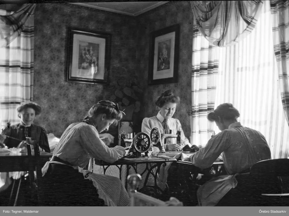 Hemsömnad av brudklänning, 1907