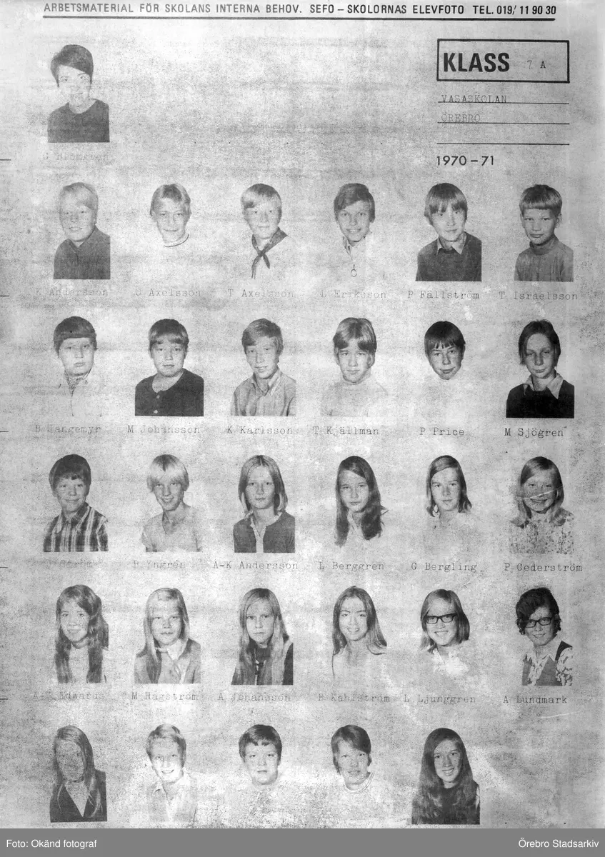 Klass 7 A Vasaskolan, 1970-1971
