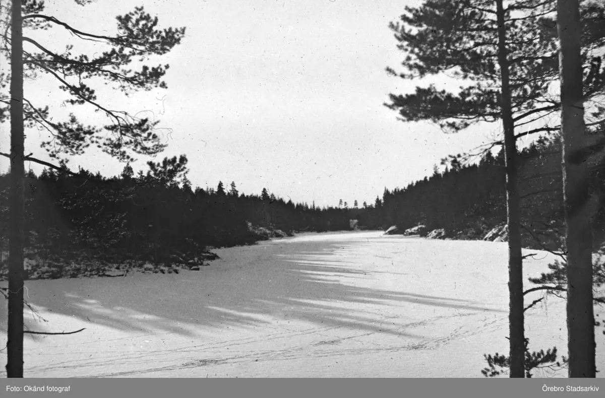 Fotspår på snötäckt is på sjön Tisaren, 1920-tal
