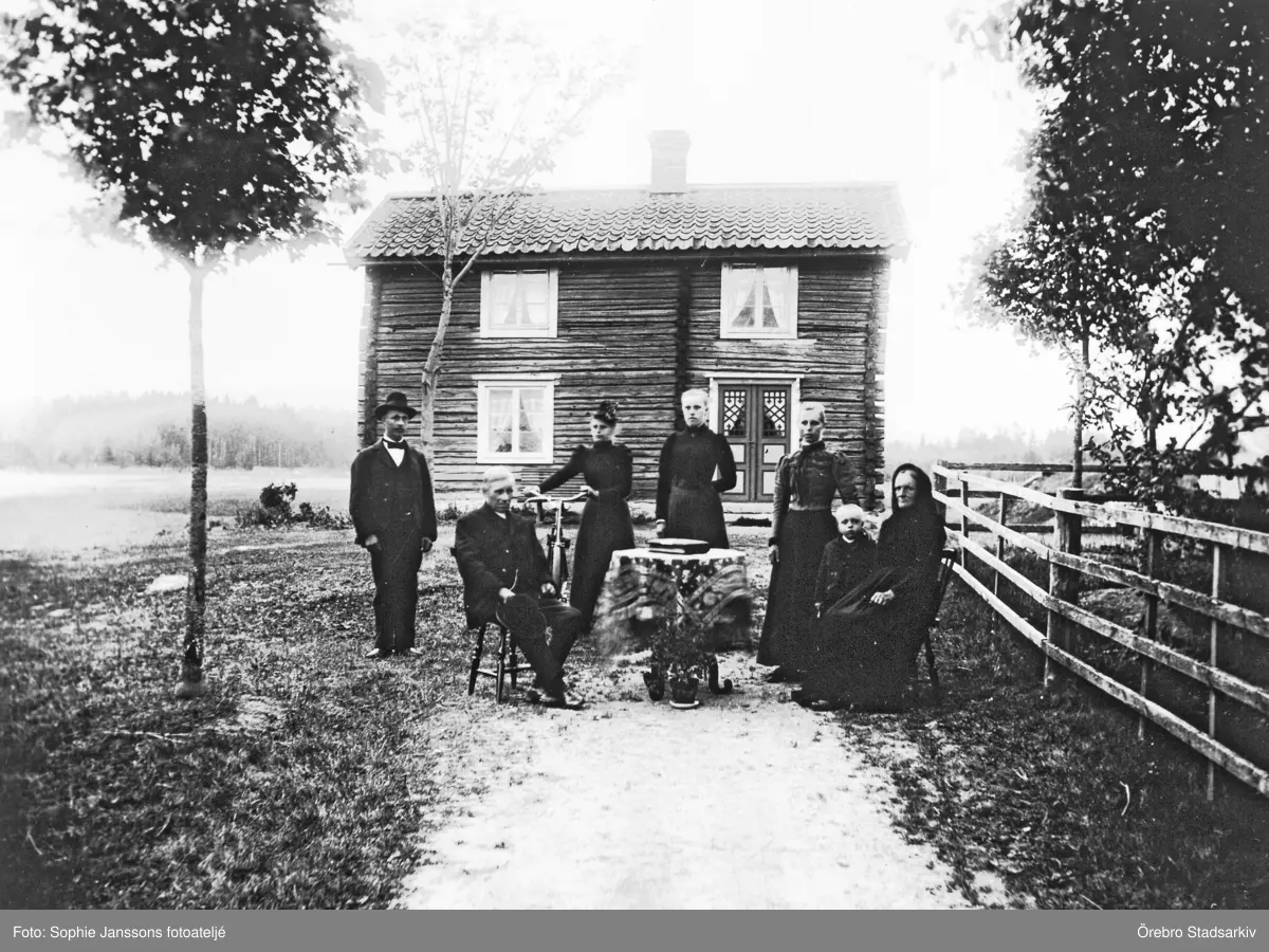 Familj utanför hus i Mullhyttan, 1919