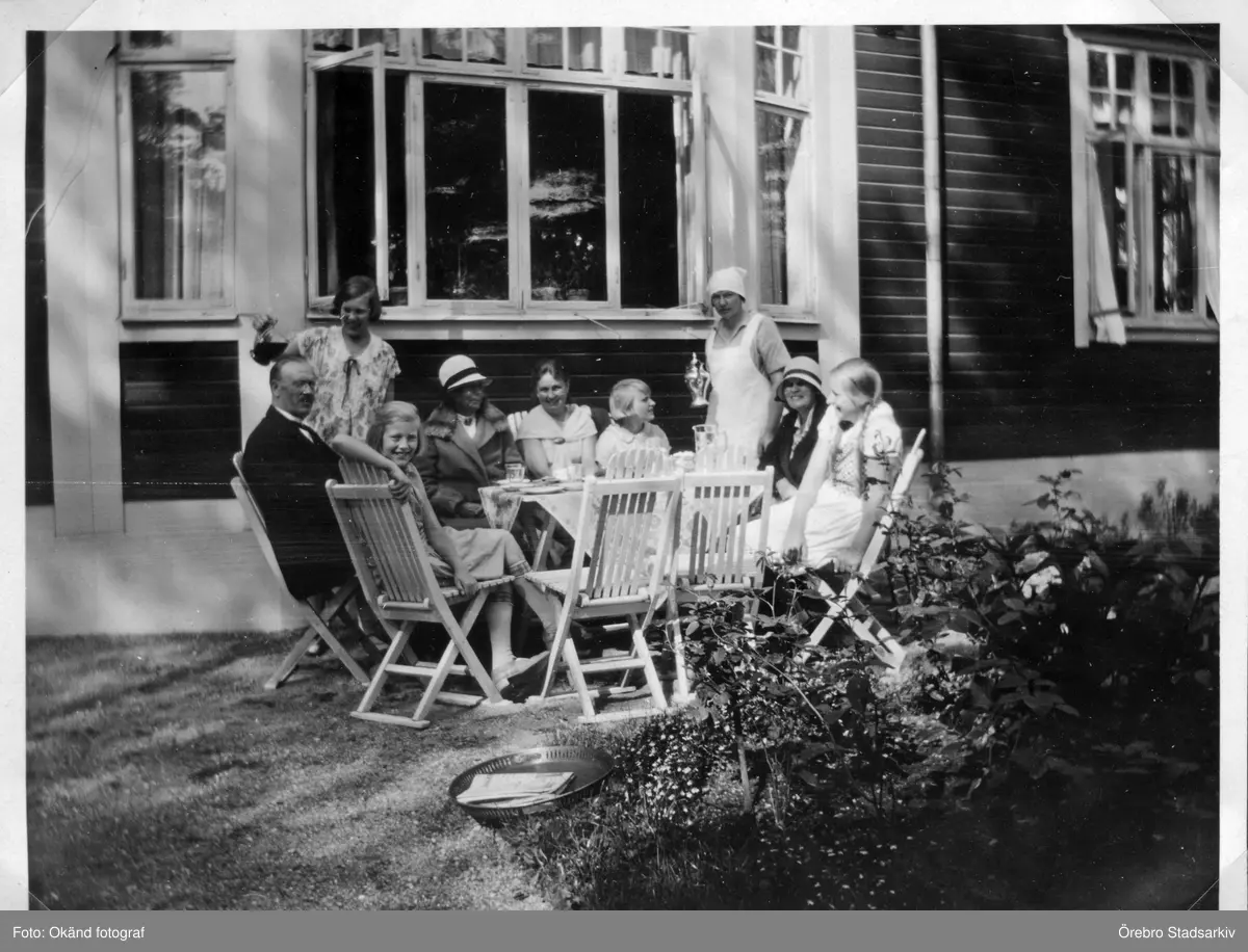 Kaffe i trädgården på Villa Tyrishäll på Glomman, 1934 före