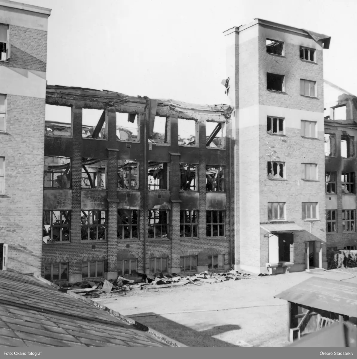 Skofabriken Rex efter brand, 1942