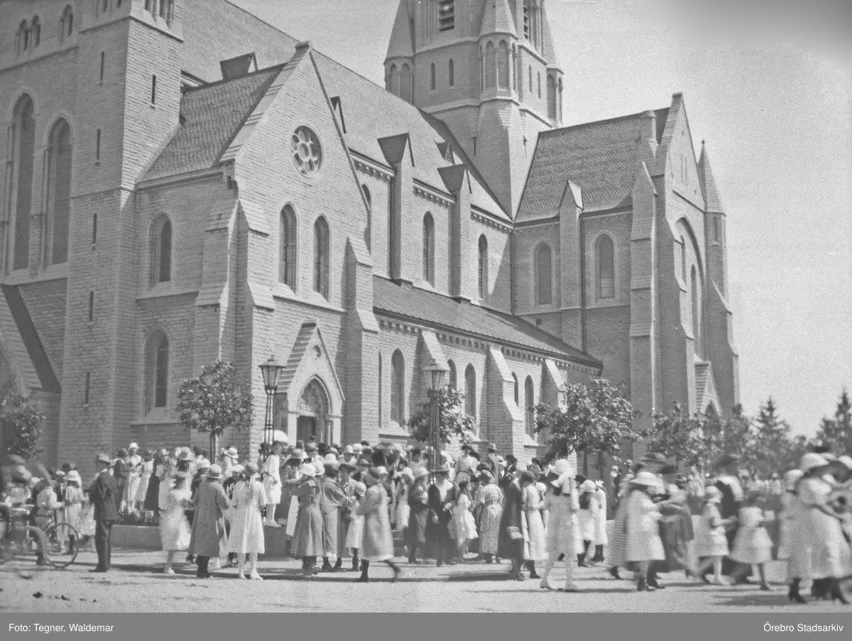 Skolavslutning vid Olaus Petri kyrka, juni 1921