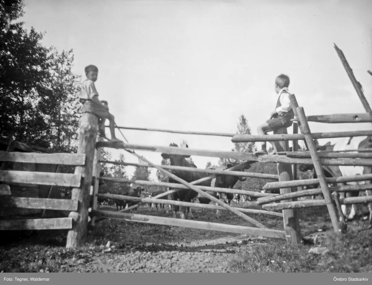 Barn på grindstolpar, juli 1920