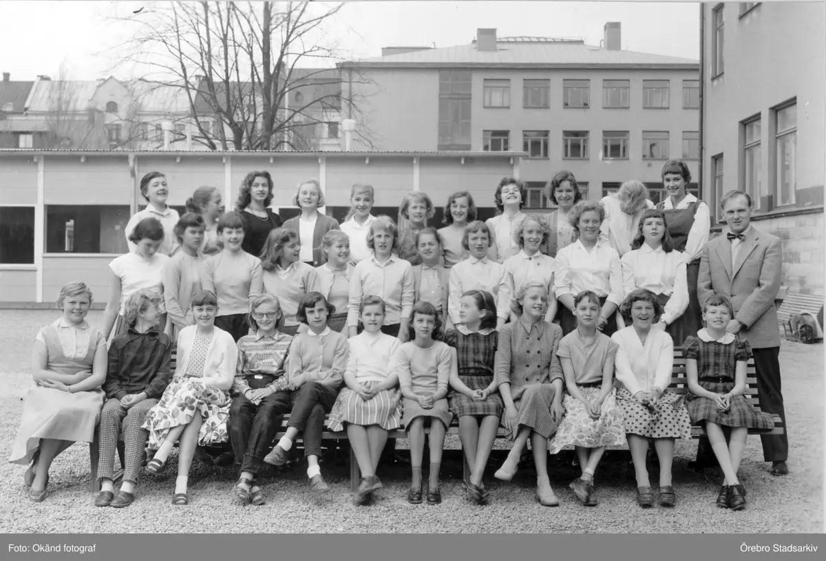 Titel: Klassfoto Kommunala Flickskolan Örebro, slutet 1950-tal