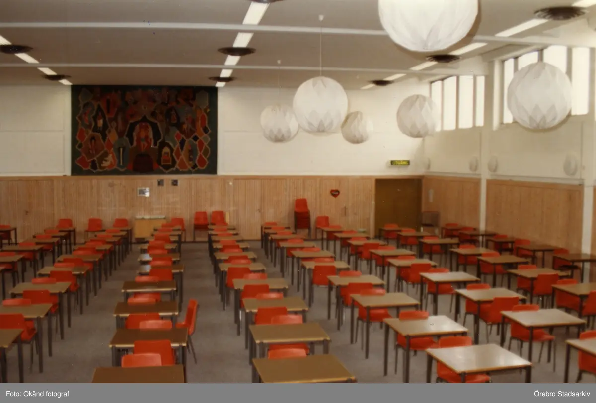 Sal iordningsställd inför prov på Risbergska skolan, 1980-tal