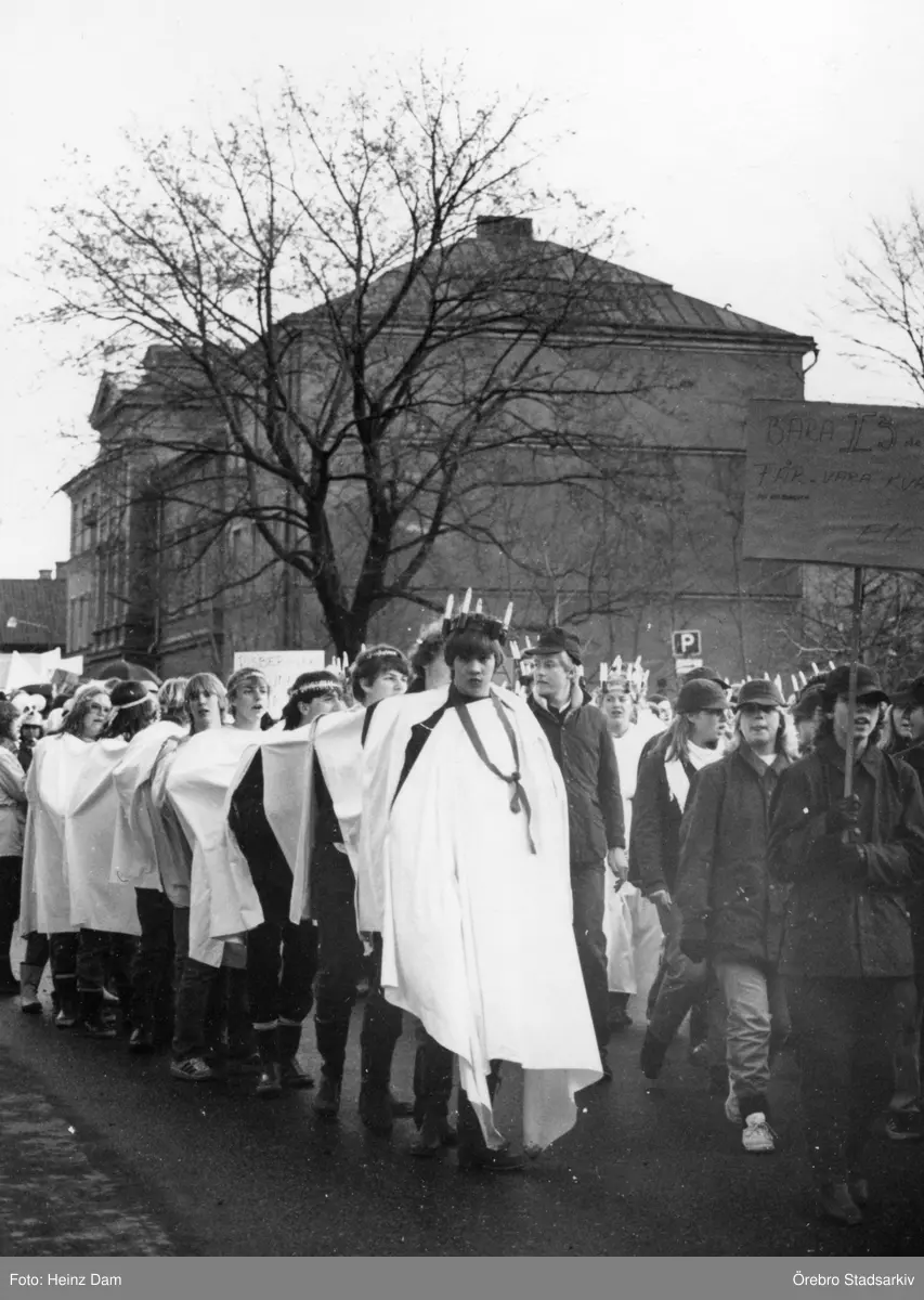 Luciaor och tärnor vid Risbergska skolan 10-årsjubileum, november 1981