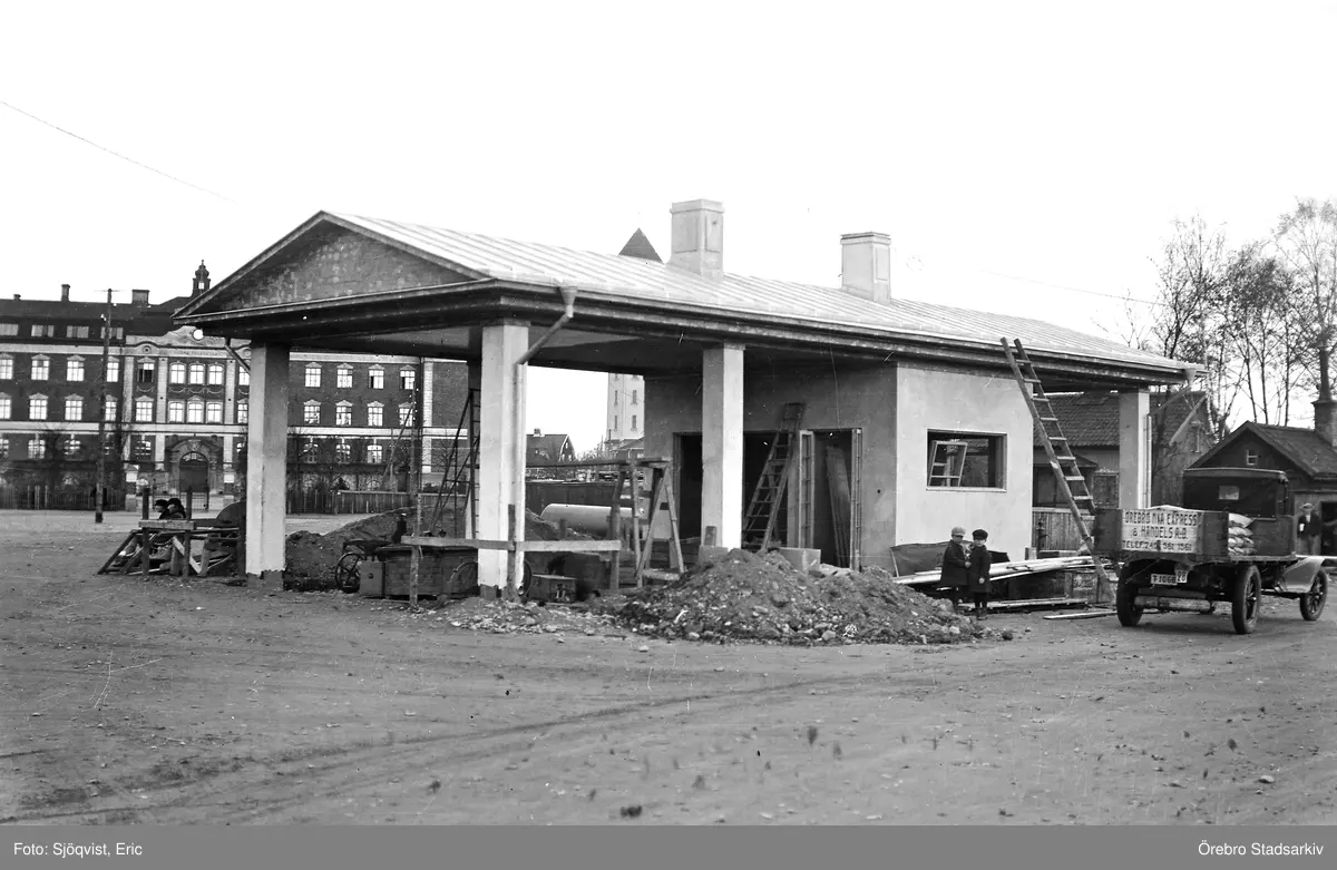 Byggnation av bensinmack vid Bromsplan, 1937 ca