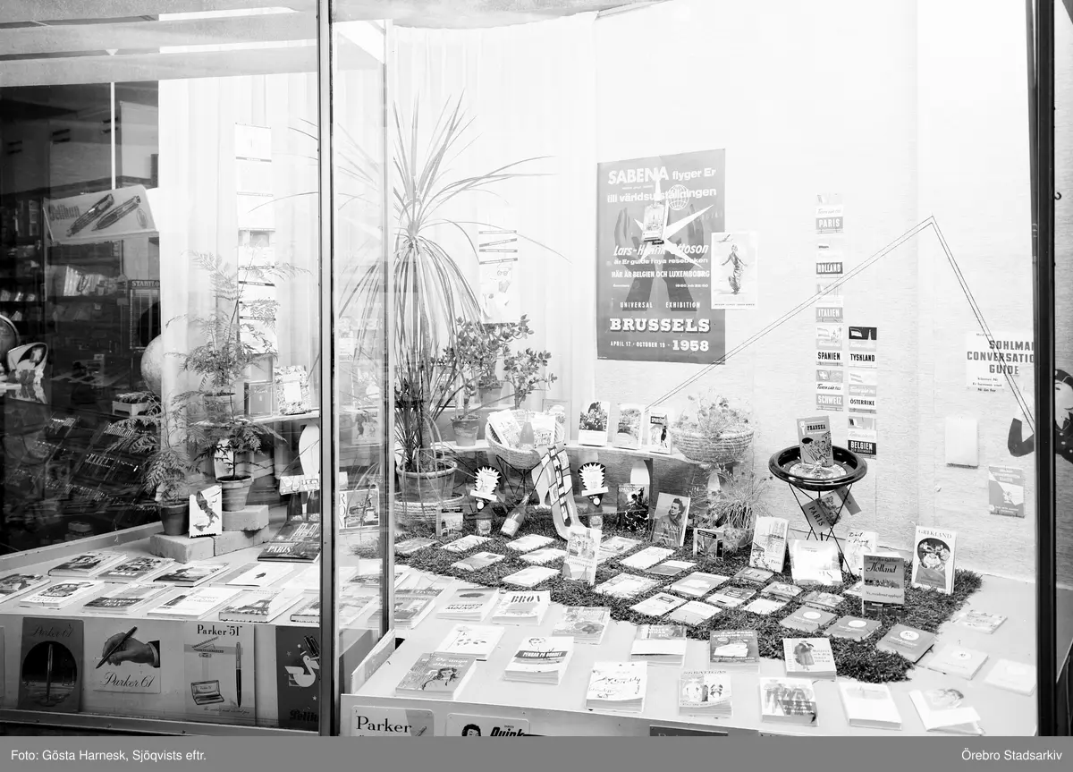 Skyltfönster till Rohloffs bokhandel, april 1958