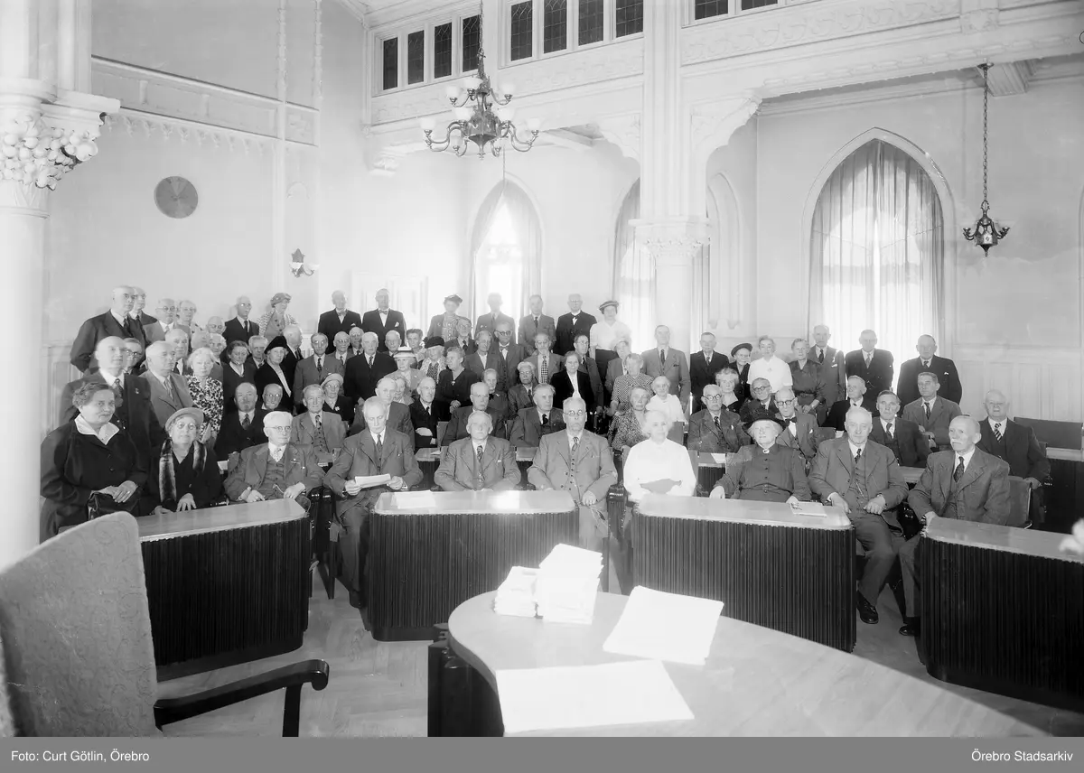 Pensionerade folkskolelärarnas riksförbunds möte i Rådhuset, 1950-tal